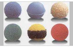 3、金剛砂膠球 金剛砂膠球分為全金剛砂膠球和半金剛砂膠球兩種。金剛砂膠球適用于清除各種結垢沉積較多的管道,但對管子有傷害,一般不長(cháng)期使用,特別銅管更慎用。 有效去除硬質(zhì)結垢,如:碳酸鈣。適用于鋼管、不銹鋼管換熱器。